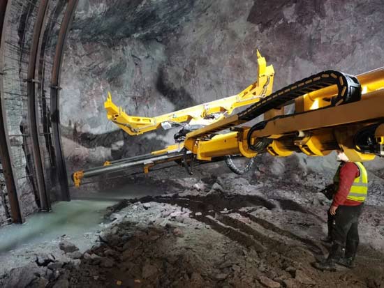 3臂3机械手2吊篮、2破碎锤、3台焊机配置,立拱作业时可进行欠挖及焊接作业。大承载回转式吊篮,便于测量、装药及锚杆锚网安装。多功能臂架,可自动拾取并背负拱架行走。