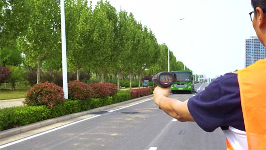 经过现场测速仪检测,宇通环卫快速路洗扫车的通过时速达到了45km/h,并且清扫过的地面没有污渍残留,真正实现了“车过地净,路见本色”。