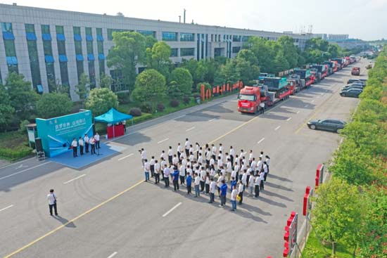 山河智能总经理夏志宏、副总经理朱建新,国际营销公司及挖掘机事业部业务负责人肖智海、范峥嵘及100余名员工代表共同见证这一盛况。
