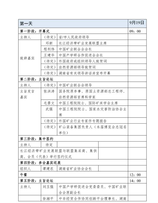 此次活动采用“会+展”相结合的形式,计划分三天进行,包括20场国际专业论坛、100场企业间商务峰会。推动我国矿业技术装备等企业发展从“单兵作战”变成全链推进,产业发展从“单体突进”迈向产业集群崛起。同时,展会也将为一带一路建设、中非经贸深度合作打开新空间,预计来自中亚、非洲、拉美、RCEP等30个国家和地区的政府官员、行业协会等参会。