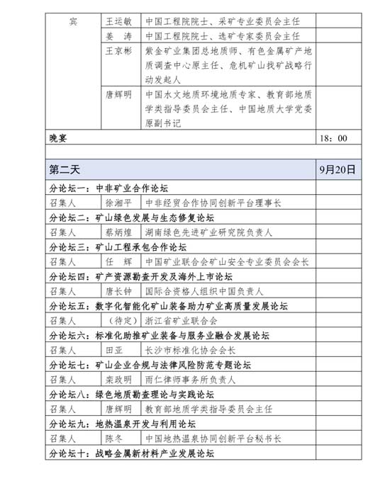 (六)支持单位:中南大学、中非经贸合作协同创新平台、中国地质科学院矿产资源研究所、中国黄金杂志社、湖南国际商会、湖南绿色先进矿业研究院、中国矿业联合会矿山安全专业委员会、湖南国际产业创新与交流中心、长沙矿山研究院有限责任公司、长沙有色冶金设计研究院有限公司、中冶长天国际工程有限责任公司、湖南有色产业投资集团有限责任公司、湖南有色金属控股集团有限公司、湖南省标准化协会、长沙市标准化协会