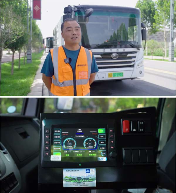 除此之外,宇通环卫车辆驾驶的舒适度和作业效率也备受驾驶员的好评。不少驾驶员在受访中提到:宇通扫地车扫路效果好、扫的干净;高压清洗车压力大、洗路洗的干净;低入口驾驶室上下车设计合理,更安全。车辆出勤率高,操作便捷,更节能。同时,新能源车辆的使用也大大降低了燃油消耗和尾气排放,为改善城市空气质量作出了积极贡献。