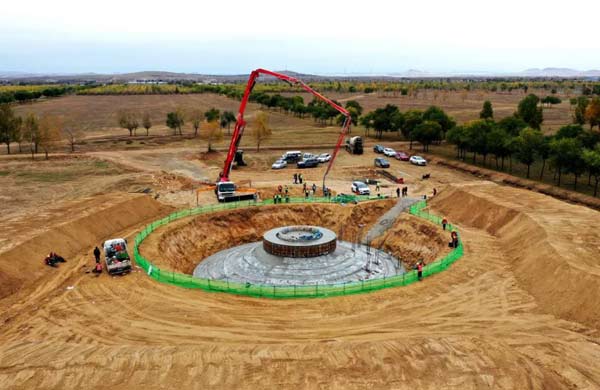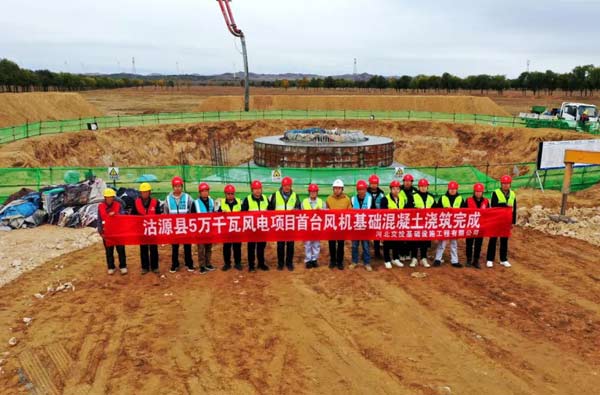 张家口高发展公司沽源县5万千瓦风电项目首台风机基础浇筑完成