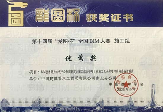 在行业影响力方面,项目承办辽宁省土木建筑学会“助力企业科技创新”观摩活动,吸引省内50余家建筑企业参与,分享智能建造与低碳技术经验;同时通过中建集团BIM联盟自研软件试点验收,其数字协同管理模式被纳入集团智能建造推广案例。在全国性赛事中,项目凭借BIM技术应用成果,荣获龙图杯BIM大赛优秀奖、中施企协BIM大赛二等奖,成为东北地区智能建造的“展示窗口”。