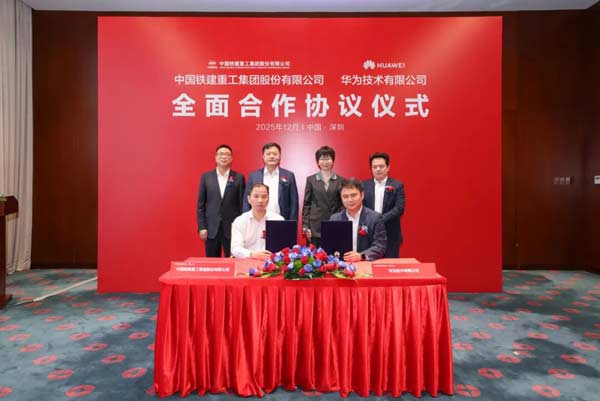 12月9日,铁建重工与华为技术有限公司在深圳签署智慧矿山技术合作协议。在铁建重工党委书记、董事长赵晖,华为公司副总裁、油气矿山军团CEO韩硕,铁建重工党委委员、副总经理白广州,华为全球技术服务部副总裁周宇的共同见证下,铁建重工智慧矿山指挥部与华为湖南区域总部代表正式签署协议。