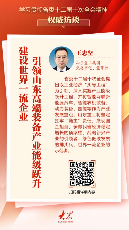 近日,《大众日报》聚焦山东重工集团学习贯彻省委十二届十次全会精神的实践举措,对集团党委书记、董事长王志坚进行权威访谈,主要内容如下。
