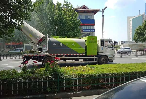 下图为“东方红”18吨大型纯电动抑尘车作业现场