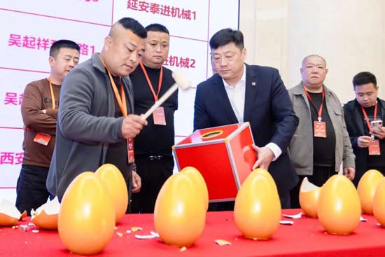 中午12时,两地午宴在开场舞中拉开帷幕,柳工领导共同向全场嘉宾致以新年美好祝愿,颁奖与抽奖环节将气氛推向高潮,金牌客户获颁荣誉奖项,幸运抽奖让来宾们满载而归。在“砸金蛋”环节,大奖逐一揭晓,购机热潮此起彼伏。相声、舞蹈等精彩节目轮番上演,嘉宾在欢声笑语中收获了购机优惠与幸运礼品。
